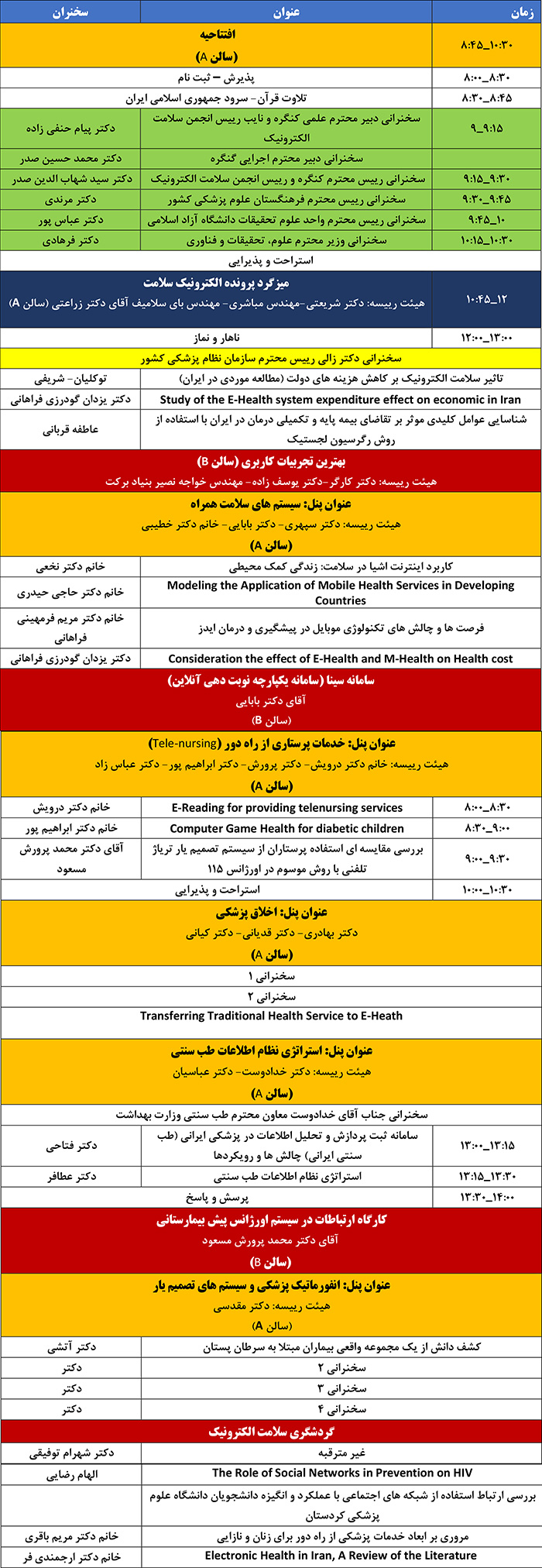 برگزاری دومین کنگره بین المللی سلامت الکترونیک توسط انجمن علمی سلامت الکترونیک ایران درتاریخ چهارم وپنجم اسفندماه نودوپنج درمرکزهمایش های بین المللی واحدعلوم وتحقیقات دانشگاه آزاد اسلامی